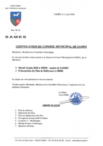 CONVOCATION CONSEIL MUNICIPAL DU 16 JUIN 2020